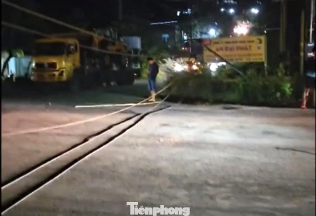 Tại hiện trường, xe máy bị văng vào lề đường, người phụ nữ có vết thương ở vùng cổ, nạn nhân nằm trên đường, cách xe máy khoảng 5m. Dây cáp bị đứt căng ngang đường.