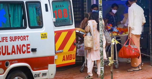 Một bệnh nhân được đưa đến khu cách ly dành cho người mắc bệnh do virus Nipah tại Bệnh viện Đại học Y khoa Kozhikode, bang Kerala - Ấn Độ trong đợt dịch năm 2023 - Ảnh: PTI