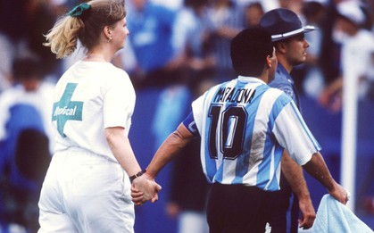 Diego Maradona trở thành huyền thoại với "bàn tay của Chúa" nhưng rồi bàn tay của một nữ y tá đã tiễn ông trong trận đấu cuối cùng ở đấu trường World Cup.