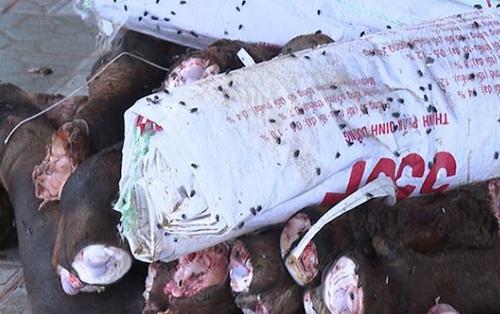Kiểm tra 2 kho lạnh và cũng là cơ sở thu mua, chế biến xương, đuôi, chân trâu bò, lực lượng công an phát hiện gần 6 tấn hàng không rõ nguồn gốc, bốc mùi hôi thối.