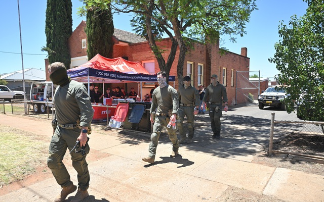 Các chuyên gia cảnh sát bang New South Wales bên ngoài đồn cảnh sát ở Lake Cargelligo, ngày 23/1/2026 (Ảnh: Reuters)