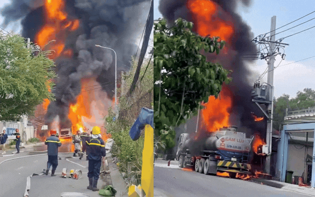 Hơn 12h ngày 28/1, Công an TP.HCM đang nỗ lực dập lửa tại đám cháy xe bồn chở xăng ở xã Nhà Bè. Trước đó, khoảng 11h 10 cùng ngày, xe bồn chở xăng đang lưu thông trên đường Cát Lợi (xã Nhà Bè, TP.HCM) thì bất ngờ bốc cháy dữ dội.