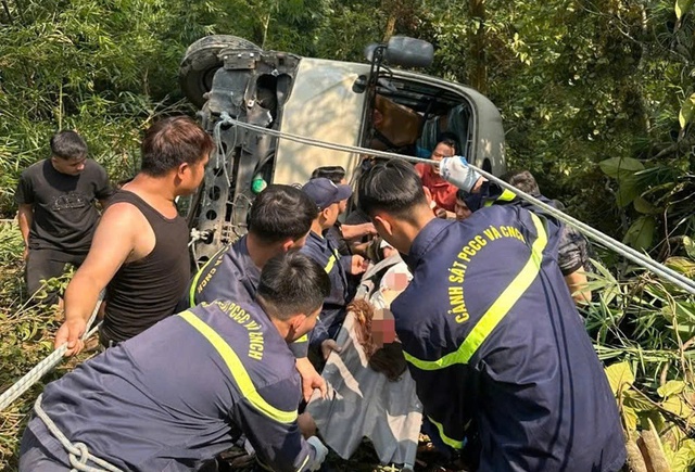 Tại hiện trường, ô tô khách bị lật nghiêng dưới vực, nhiều mảnh kính vỡ vụn. Nhận được tin báo, lực lượng cảnh sát PCCC và CNCH Công an tỉnh Phú Thọ phối hợp các đơn vị chức năng và người dân đưa nạn nhân mắc kẹt trong xe ra ngoài. Nạn nhân bị thương đã được đưa đi cấp cứu.