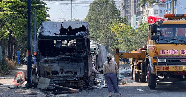 Ngày 27-4, Công an phường Cát Lái, TPHCM đang điều tra nguyên nhân xe đầu kéo cháy ngùn ngụt trên đường Đồng Văn Cống.