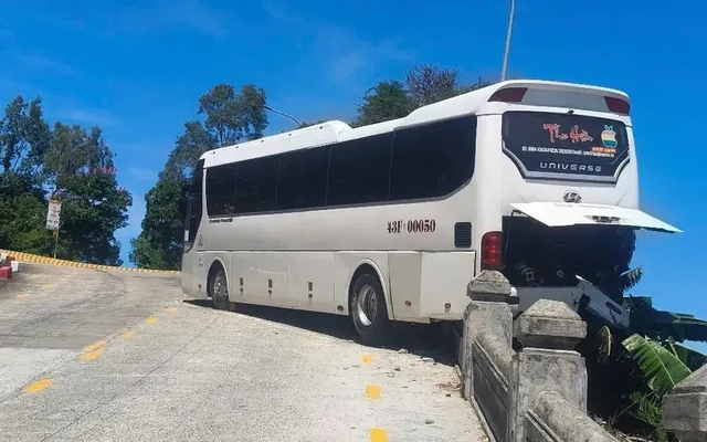 Theo thông tin ban đầu, hơn 10h cùng ngày, khi đang di chuyển lên con dốc bê tông dẫn vào chùa Linh Ứng, xe ô tô khách biển số 43F - 000.50 bất ngờ bị tụt dốc.