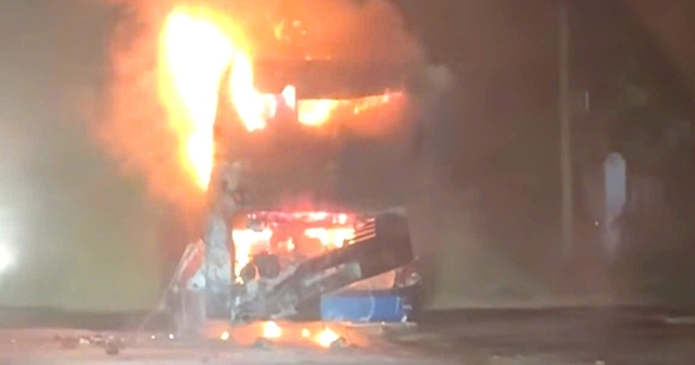 Xe khách biển số TPHCM chở 9 người bốc cháy ngùn ngụt trên đường tránh