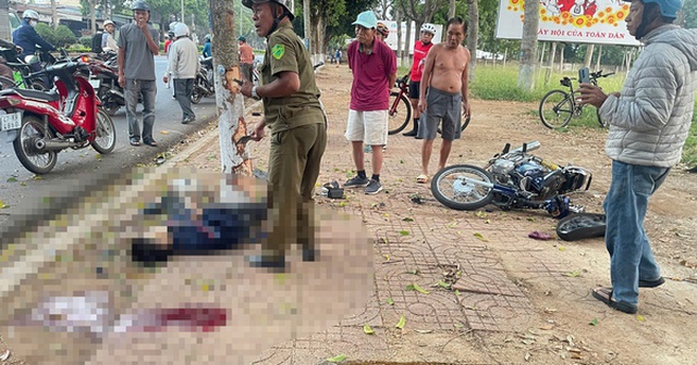 Ba thiếu niên cùng đi trên một xe máy không may tông vào gốc cây bên đường khiến 2 người chết, 1 em bị thương