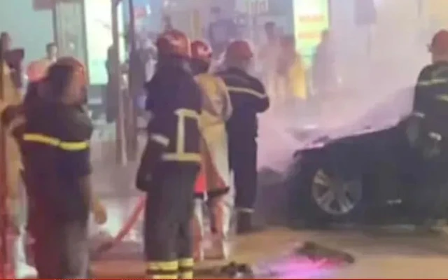 Một số nhân chứng tại hiện trường cho biết, ban đầu họ ngửi thấy mùi khét. Khi ra ngoài kiểm tra, họ phát hiện phần đầu chiếc ô tô Mercedes S450 (chưa rõ biển kiểm soát) đang bốc cháy dữ dội.