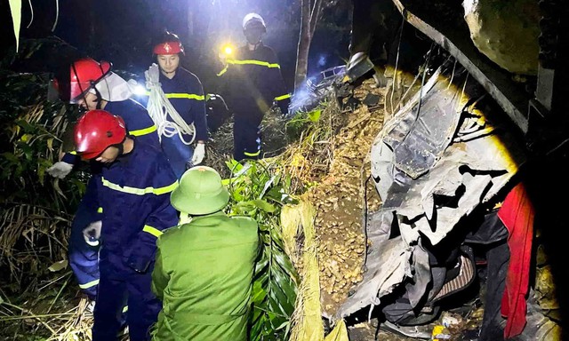 Tại hiện trường, xe tải nằm sâu dưới vực âm, độ dốc thẳng đứng, địa hình hiểm trở và trơn trượt. Lực lượng cứu hộ đã khẩn trương trinh sát, xác định vị trí nạn nhân và triển khai các biện pháp nghiệp vụ.