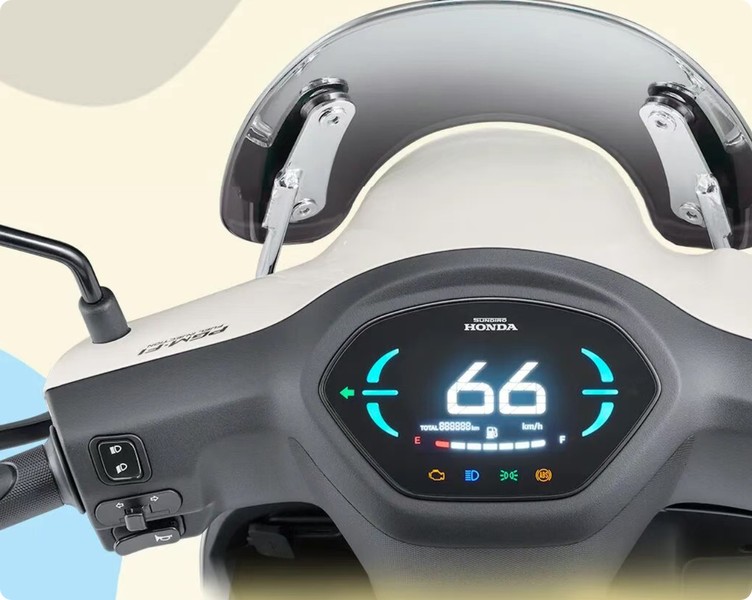 Khác biệt hoàn toàn với những đường nét sắc sảo đại trà, NS125A 2026 chọn cho mình lối đi riêng với triết lý thiết kế bo tròn cổ điển kết hợp cùng những chi tiết mang hơi hướng thể thao. Điểm nhấn thị giác mạnh mẽ nhất đến từ cụm đèn pha LED dạng tròn cỡ lớn, kết hợp cùng dải đèn hậu và xi-nhan tinh tế, tạo nên một tổng thể thanh lịch và không kém phần sang trọng. Ngôn ngữ thiết kế này giúp chiếc xe tỏa sáng rực rỡ bất kể ngày đêm, mang đến cảm giác cao cấp tiệm cận với nét thanh lịch của người đàn anh SH Mode. Không chỉ trau chuốt về ngoại hình, khu vực điều khiển của xe cũng được nhà sản xuất ưu ái trang bị cụm đồng hồ kỹ thuật số toàn phần với màn hình cỡ lớn, hiển thị sắc nét mọi thông số vận hành quan trọng nhất.