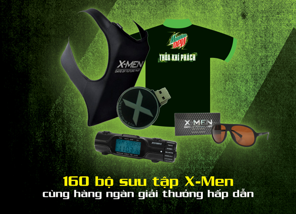Một thông tin quan trọng là hiện nay, Mountain Dew - Bật khí phách X đang thu hút rất nhiều bạn trẻ về tham dự và đọ quyết liệt năng lực X của mình để giành những phần quà cực độc, đặc biệt là chiếc vé may mắn đến Mỹ và tham quan phim trường X-Men: Ngày cũ của tương lai. Hãy nhanh chóng tăng tốc và bứt phá ngay thôi.