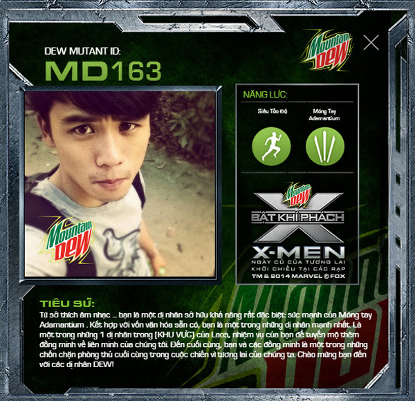 Bất kể ai cũng có một năng lực đặc biệt, cái chính là bạn đã khám phá ra nó chưa. Cũng giống như Giáo sư X có một khả năng ngoại cảm tài ba, Magneto là một chiến lược gia tài ba hay Wolverine có siêu giác quan của loài mãnh thú. Hãy khám phá năng lực tiềm ẩn của chính mình và bật tung khí phách X của mình cùng cộng đồng Dew Dudes.