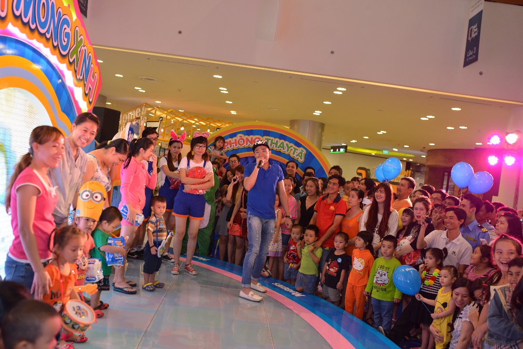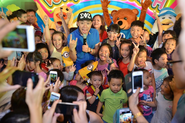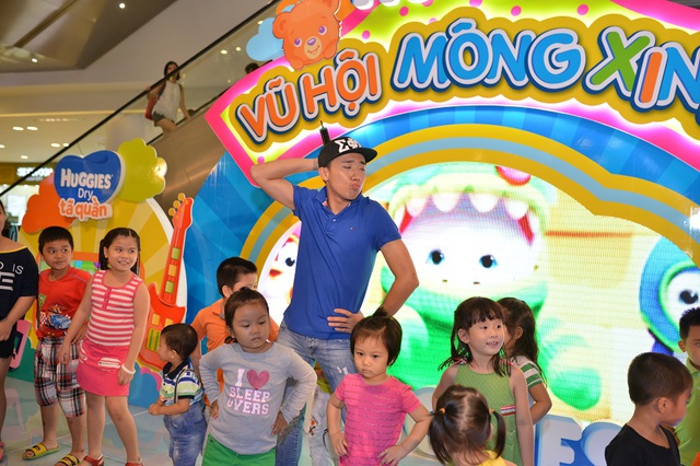 Không chỉ trổ tài nhảy nhót, Trấn Thành còn khiến các bé và phụ huynh trố mắt khi cất giọng hát trên nền nhạc bài “Hai cô tiên” phiên bản mông xinh. Từ sau “Cặp đôi hoàn hảo”, hiếm khi khán giả được thưởng thức giọng hát của chàng MC đa tài này.