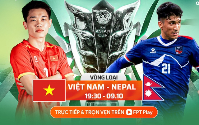 Đội tuyển Việt Nam đấu với Nepal ở lượt trận thứ ba vòng loại Asian Cup 2027. Trận đấu diễn ra lúc 19h30 ngày 9/10, được phát sóng trực tiếp trên hệ thống của FPT Play (gồm ứng dụng FPT Play, website fptplay.vn và kênh YouTube FPT Bóng đá Việt).