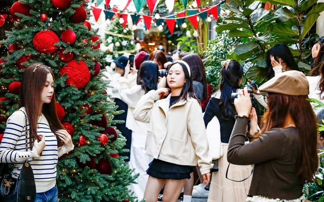 Không phải ai cũng có thời gian lên phố lớn, chen vào các góc chụp đông đúc như Hàng Mã. Bởi thế, những quán cà phê được xem như lựa chọn “vừa đẹp – vừa tiện – vừa chill”. Cứ thế, mùa Giáng sinh dường như đến sớm hơn với mỗi nhóm bạn tranh thủ giờ nghỉ trưa để chụp vài tấm, hay những đôi tình nhân nắm tay nhau giữa không gian huyền ảo.