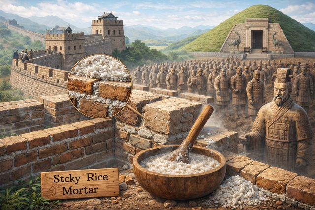 Trong câu chuyện về Tần Thủy Hoàng, người ta thường nhắc đến đội quân đất nung hay khát vọng bất tử. Nhưng sâu trong lòng đất và tường thành là một di sản thầm lặng hơn: một loại xi măng được tạo ra từ gạo nếp, thứ đã âm thầm gánh chịu hơn hai thiên niên kỷ lịch sử, như một minh chứng rằng công nghệ vĩ đại nhất đôi khi đến từ những vật liệu giản dị nhất.
