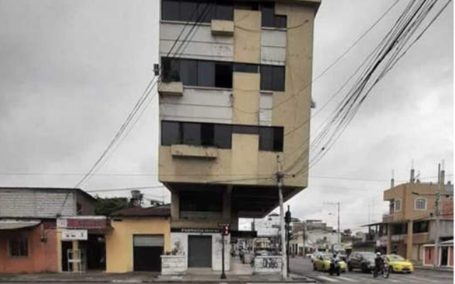 Nằm ở góc phố Pichincha và Buenavista, ngay trung tâm thành phố Machala (Ecuador), tòa nhà mang tên El Inmortal từ lâu đã khiến người đi đường không khỏi giật mình. Công trình cao 4 tầng với phần tầng một hẹp bất thường, trong khi ba tầng phía trên lại phình rộng và vươn ra ngoài tới khoảng 5m, tạo cảm giác chênh vênh như thể chỉ cần một rung chấn nhẹ cũng có thể đổ sập bất cứ lúc nào.
