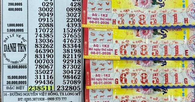 Tương tự, mở thưởng cùng ngày với vé số Bình Thuận, giải độc đắc (dãy số 238511) của vé số An Giang cũng được xác định "nổ" tại TP Cần Thơ. Đến sáng 9-1, chỉ mới có khách hàng trúng giải an ủi đã đến các đại lý vé số như Trắng, Tèo, Danh Tên, Quang Vinh ở Cần Thơ để đổi thường; còn người trúng độc đắc 14 tờ vé số An Giang vẫn đang được các đại lý vé số thông báo "truy tìm".