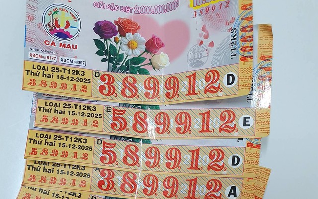 Theo đó, giải độc đắc (dãy số 989912) và giải an ủi của vé số Cà Mau, do Công ty TNHH Một thành viên Xổ số kiến thiết Cà Mau mở thưởng chiều 15-12, được xác định trúng tại TP Cần Thơ.