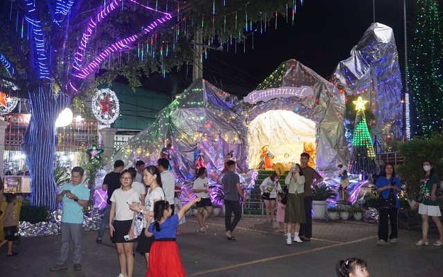 Dọc các con đường quanh khu xóm đạo này, không khó để bắt gặp nhà dân trang trí hang đá, tiểu cảnh được thiết kế công phu và thắp sáng mỗi khi chiều tối. Nhiều gia đình tranh thủ đưa con nhỏ ra phố, vừa vui chơi vừa tận hưởng bầu không khí rộn ràng đang dần lan tỏa khắp khu xóm đạo.
