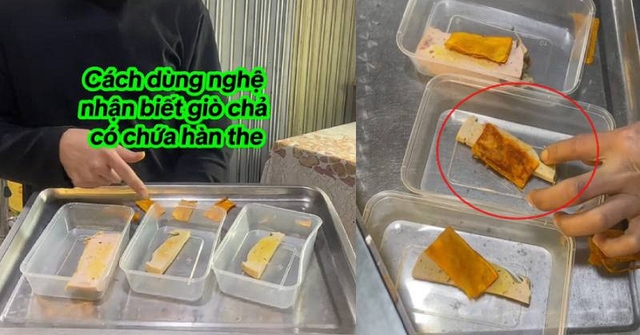 Những ngày gần đây, trên mạng xã hội lan truyền một đoạn clip do một tài khoản cá nhân đăng tải, hướng dẫn cách dùng nghệ để kiểm tra giò chả có chứa hàn the hay không. Theo người đăng tải thì chỉ cần dùng 1 miếng giấy có tẩm nghệ đặt lên trên miếng giò/chả, nếu sau đó miếng giấy có đổi màu thì có khả năng miếng giò/chả đó có chứa hàn the, ngược lại, nếu không đổi màu thì có thể yên tâm sử dụng.