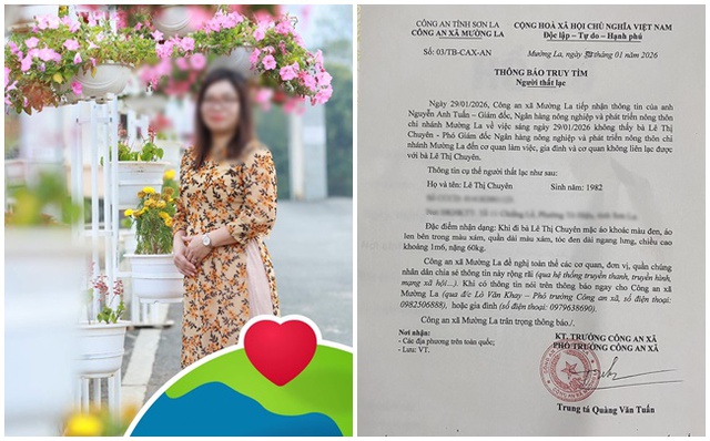 Từ hôm qua (30/1), page chính thức của Công an xã Mường Lát (Sơn La) gây chu ý khi chia sẻ thông báo tìm bà Lê Thị Chuyên - Phó Giám đốc, Ngân hàng nông nghiệp và phát triển nông thôn chi nhánh Mường La.