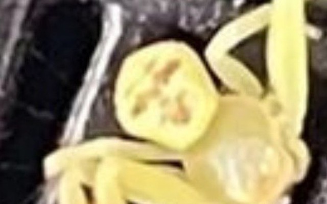 Con nhện vàng có khuôn mặt giống người ở bụng, được xác định là nhện cua. Ảnh: Nut Siri/Bangkok Post.