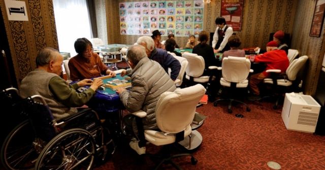 Theo Reuters, Day Service Las Vegas là một trung tâm chăm sóc ban ngày cho người cao tuổi tại Tokyo, nơi các cụ có thể tham gia poker, pachinko và các trò chơi giải trí có tính tương tác cao. Hãng tin này mô tả người tham gia bắt đầu ngày mới bằng kiểm tra sức khỏe và các bài tập kéo giãn trước khi ngồi vào bàn chơi. Reuters cũng lưu ý rằng cờ bạc là bất hợp pháp ở Nhật Bản, vì vậy tại đây không sử dụng tiền thật.