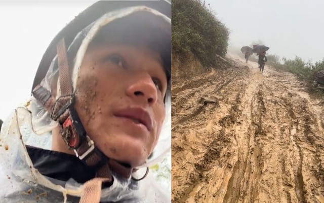 Trên con đường núi lầy lội vì trời mưa, hình ảnh thầy giáo lấm lem bùn đất dừng xe hướng dẫn các em nhỏ đến điểm trường khiến cộng đồng mạng xúc động.