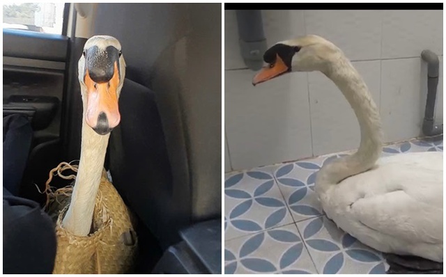 "Thiên nga bị cuộn đầu, nhét trong ba lô, dẫn đến stress nặng. Ngoài ra, do bị bán vào một trại buôn nên hiện chưa thể đưa ngay về chuồng nuôi mà phải cách ly, theo dõi sức khỏe" - bà Giang chia sẻ trên Người Lao Động.